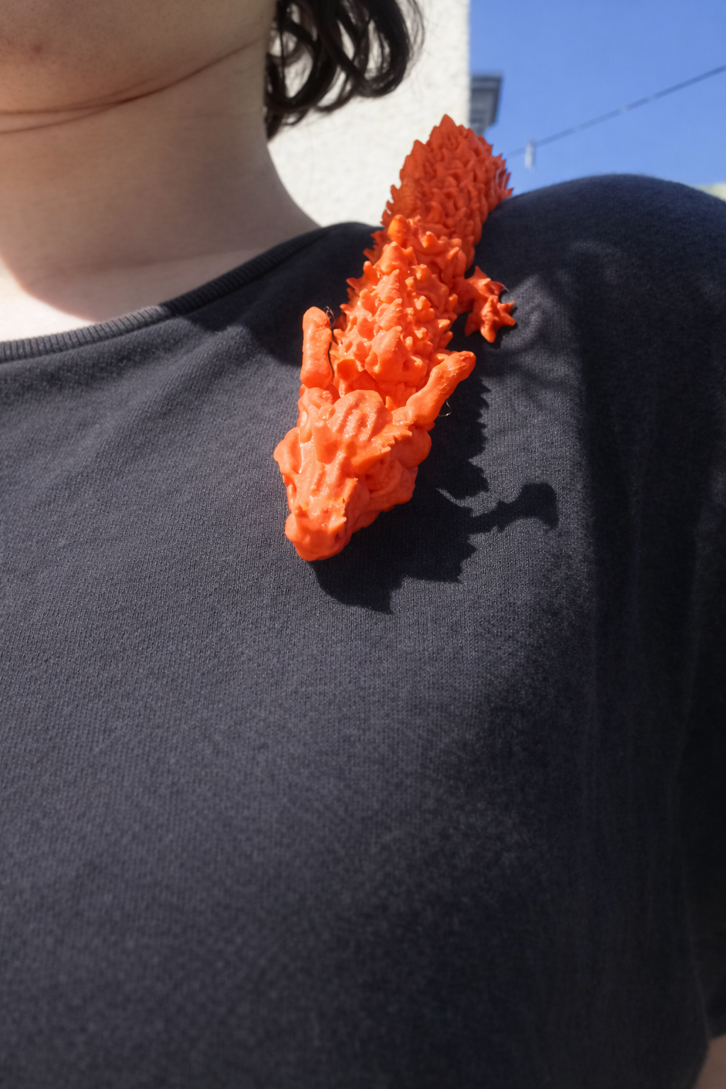 Con un impresionante largo de 40 cm y 37 puntos de articulación, este dragón es perfecto para quienes buscan una pieza única para su colección o un aliado en momentos de estrés.