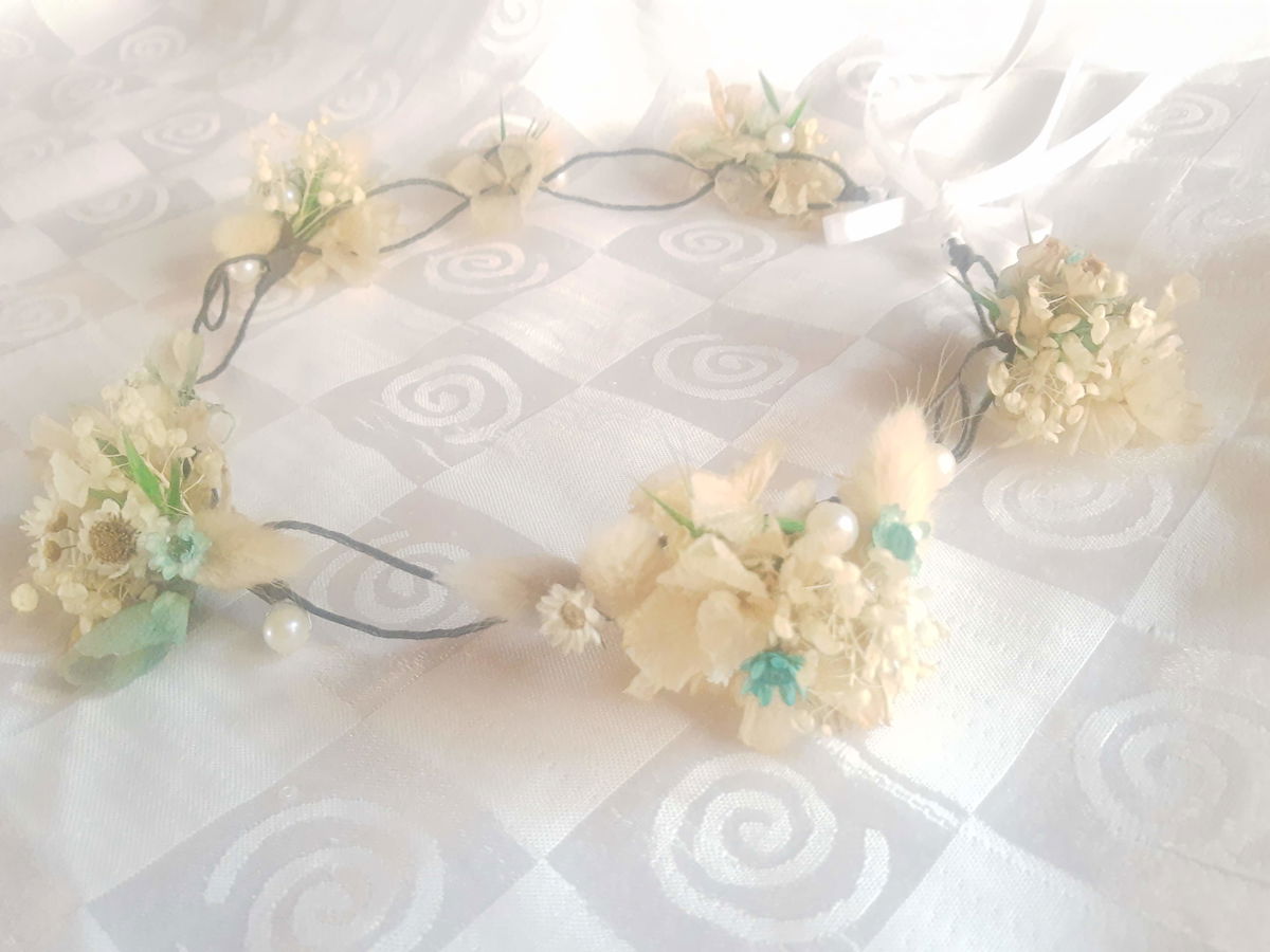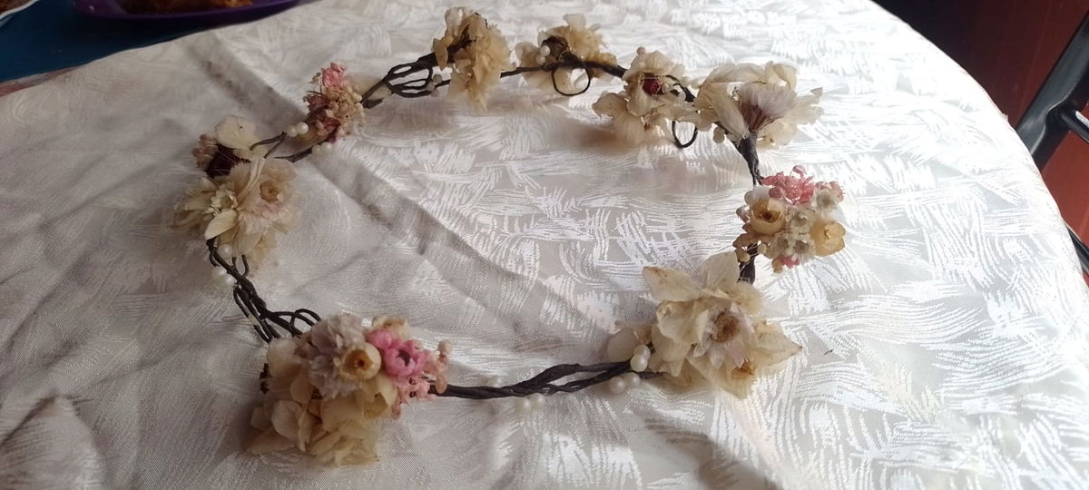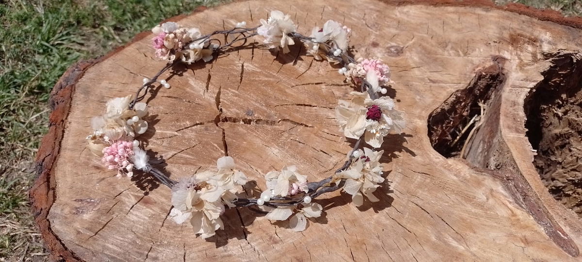 Cada corona está elaborada a mano con flores secas y preservadas, en la paleta de colores que elijas (según disponibilidad de stock). Se arma sobre base flexible y liviana, ideal para usar como tocado, decoración o detalle emocional en eventos especiales.