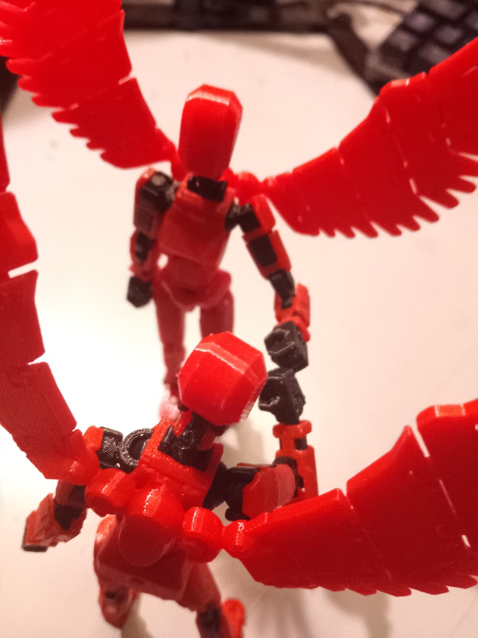 Dos figuras articuladas fabricada en PETG (estructura) de alta calidad y resistencia, y en PLA de mayor dureza para las partes externas. Cuenta con más de 13 puntos de articulación que permiten poses dinámicas y expresivas.